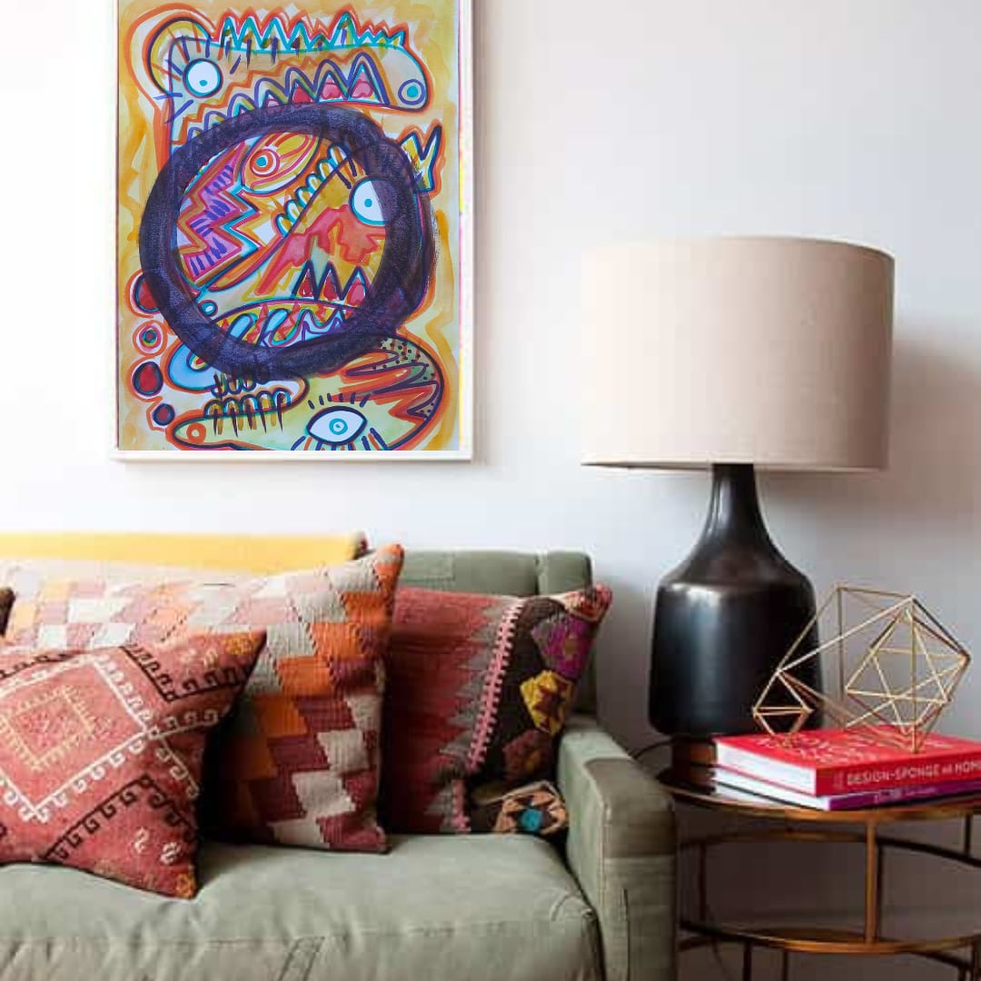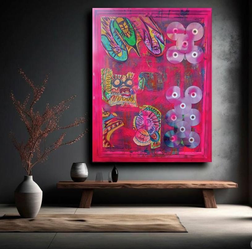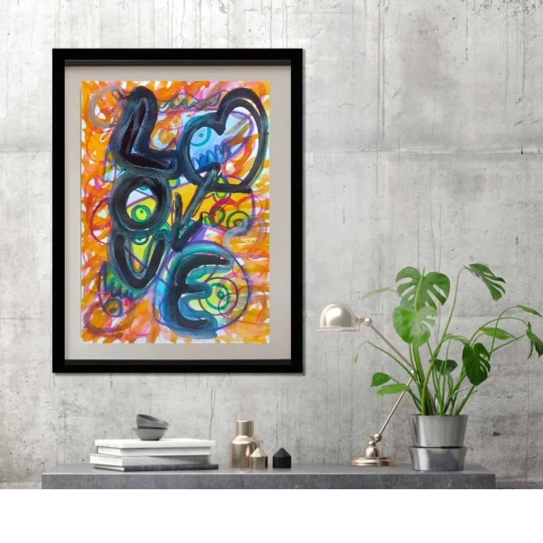 Lienzos pintados en acrílico y grafiti , y acuarelas mega divertidas.