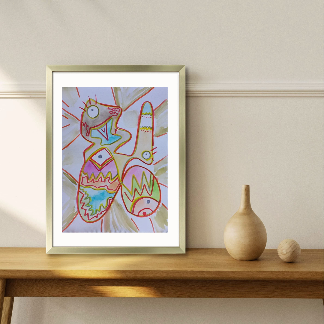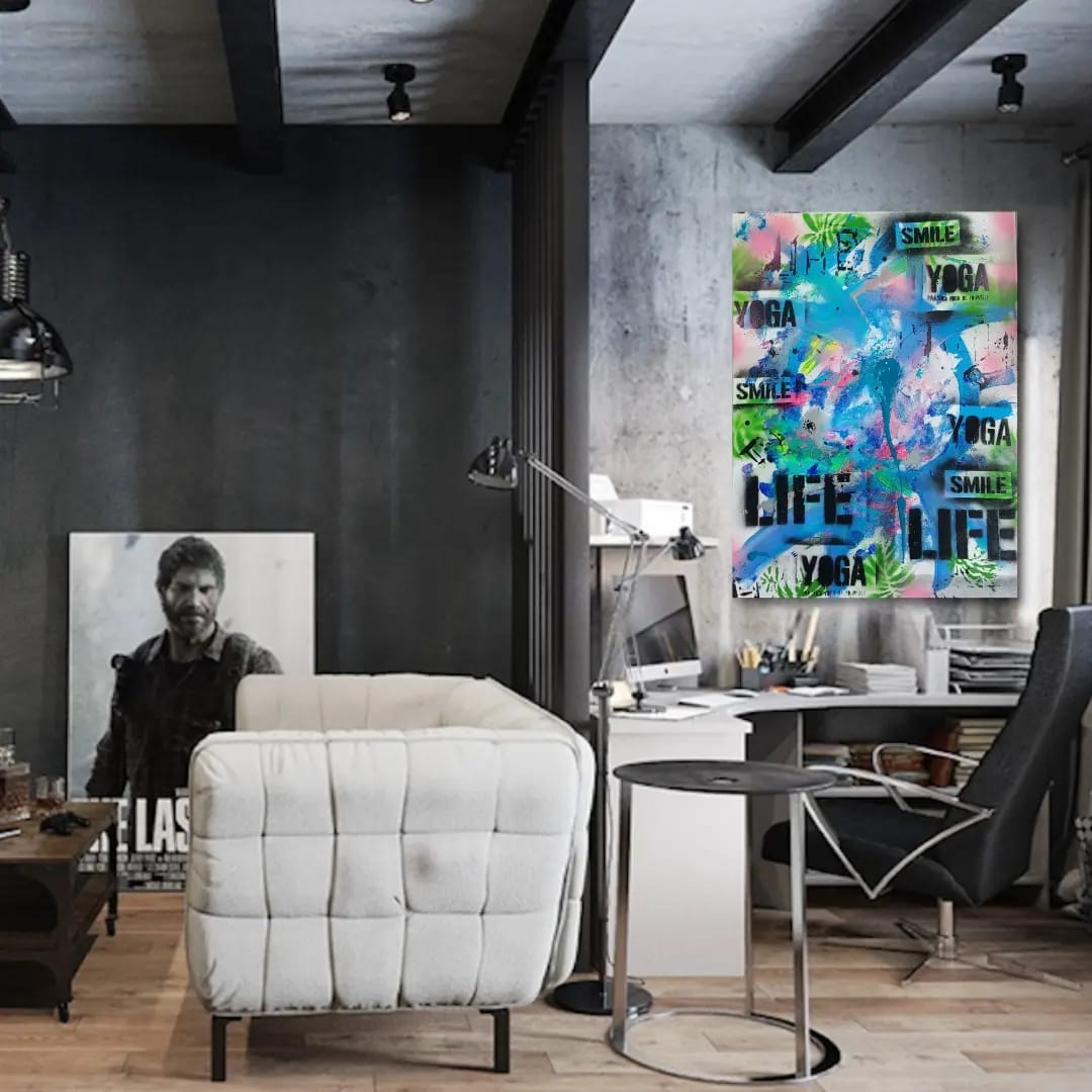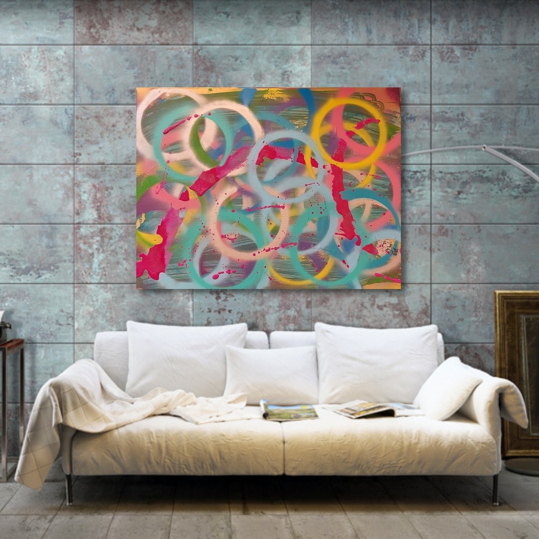 Lienzos pintados en acrílico y grafiti , y acuarelas mega divertidas.